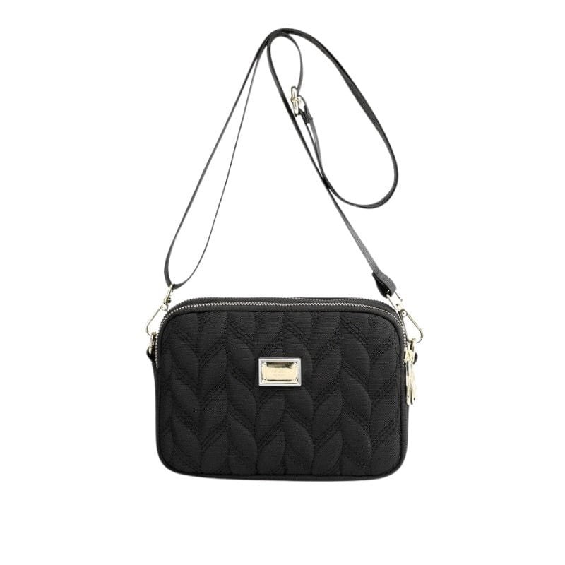 Denna fina lilla handväska är den perfekta accessoaren för en stilren och modern look. Den quiltade designen ger en elegant touch, medan den svarta färgen gör väskan lätt att matcha med alla outfits. Med en kompakt men rymlig insida rymmer den dina viktigaste tillhörigheter, som mobil, plånbok och nycklar. Väskan har en justerbar axelrem med stilfullt präglad text, vilket ger en trendig och sportig känsla. Oavsett om du är på språng i stan eller på väg till en utekväll är denna handväska ett praktiskt och snyggt val.