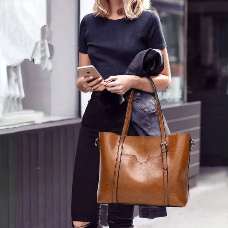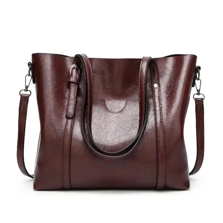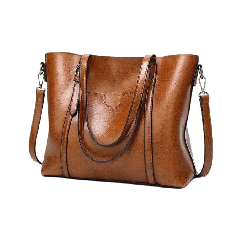 Letar du efter en elegant och rymlig handväska i skinnimitation till ett bra pris? Denna bruna damväska kombinerar stil och funktionalitet med sin lyxiga finish och praktiska design. Tillverkad av slitstarkt PU-läder med en mjuk och sofistikerad textur, passar den perfekt för både arbete och vardag. Med både dubbla handtag och en justerbar axelremkan du bära väskan precis som du vill. Passa på att fynda denna tidlösa väska till rabatterat pris!