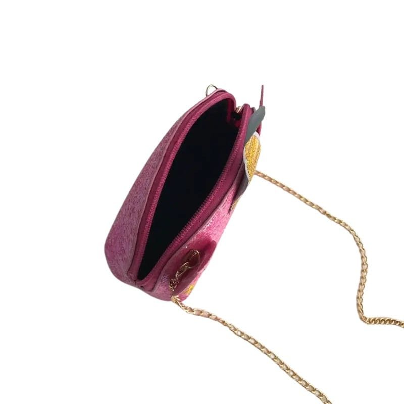 Denna lilla och charmiga barnväska i form av en enhörning är den perfekta accessoaren för små fashionistas! Tillverkad i mjukt och glittrande material med söta detaljer, som ett gyllene horn och broderade ögon, gör den varje outfit magisk. Väskan har ett rymligt huvudfack för att förvara små skatter som godis, leksaker eller en mobiltelefon. Den guldfärgade kedjeremmen ger en elegant touch och gör den bekväm att bära över axeln. Perfekt för födelsedagar, lekdagar eller festliga tillfällen – en sagolik väska för enhörningsälskare!